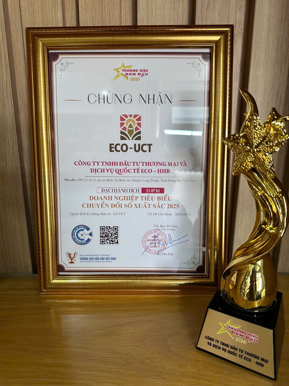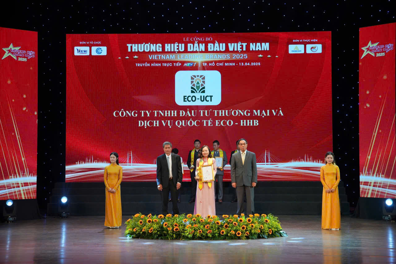 Ngày 13/04/2025, tại Lễ Công bố “Thương Hiệu Dẫn Đầu Việt Nam 2025” truyền hình trực tiếp kênh HTV1 đài truyền hình TP.HCM ECO-UCT đơn vị trực thuộc ECO-HHB đã vinh dự nhận được danh hiệu ”TOP 10 Doanh Nghiệp Tiêu Biểu Chuyển Đổi Số Xuất Sắc 2025” ECO-UCT đặc biệt chú trọng chuyển đổi số và ứng dụng công nghệ trong quản lý vận hành và phân phối sản phẩm, với tầm nhìn dài hạn công ty hướng đến trở thành thương hiệu dẫn đầu trong kỷ nguyên số và tạo ra giá trị cho cộng đồng.